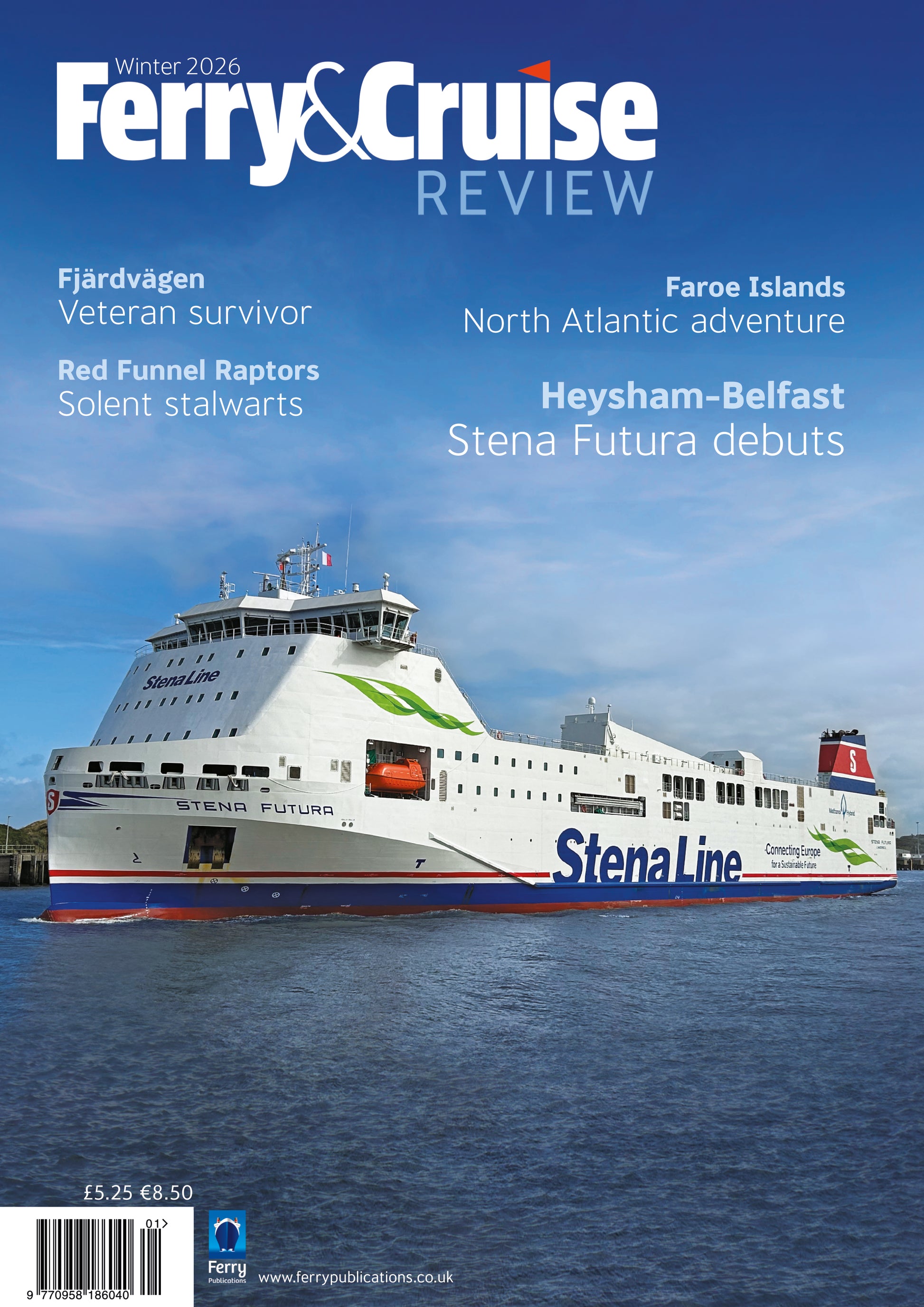 The next issue of FCR will feature an article by Matt Davies on the introduction of Stena Futura to the Heyham-Belfast service, heralding the start of a new era for the route. Richard Seville will report on a recent visit to the Faroe Islands aboard Norröna and the local Faroese ferries of Strandfarskip Landsin in an article held over from this issue. Andrew Cooke charts the story of Red Funnel’s Raptor-class vessels on the Southampton-Cowes service, while Matt Davies takes look at Fjärdvägen, the oldest ro-ro vessel in service on Northern Europe - a survivor from 1971. Plus the usual comprehensive look at ferry and cruise operations around the world. Published late January 2026.
